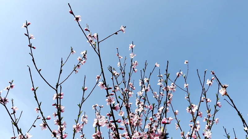 走進前進村的脆蜜桃和冬桃基地,只見一簇簇粉紅的桃花掛在枝頭,微風拂過,桃花隨著枝頭搖擺,婀娜多姿。一只只蜜蜂來不及欣賞美景,在花叢中上下翻飛,收獲著屬于它自己的甜蜜。偶爾幾個游客漫步其中,仿佛走進了十里桃花醉春風的詩情畫卷。桃花的花期持續(xù)到4月初,而采摘期卻能從5月份延續(xù)12月份,無論什么時候來,都能給你帶來驚喜。