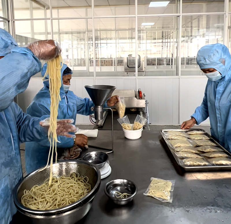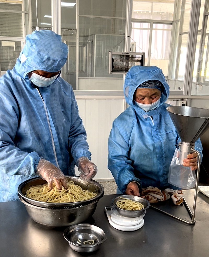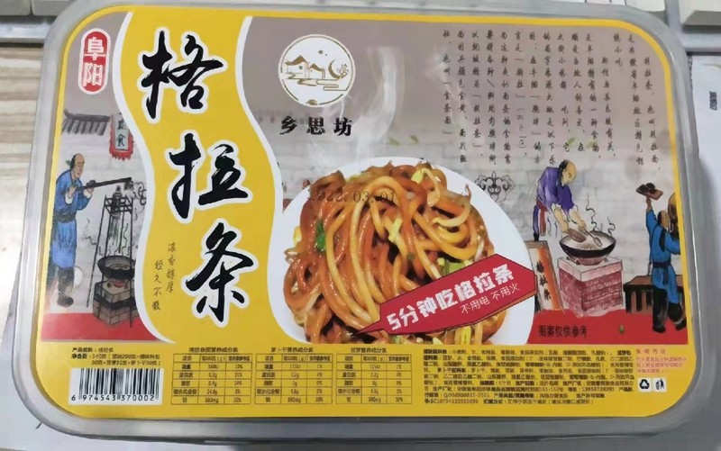 對于在外的阜陽人來說,吃上一碗熱乎的格拉條,就成為一種奢念。但是阜南苗集鎮(zhèn)的一個食品加工廠,就把格拉條做成了速食食品,銷往全國各地,方便了在外務(wù)工經(jīng)商的200多萬阜陽人。