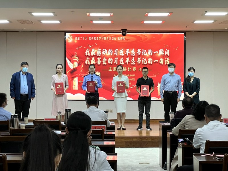 9月23日上午,中共阜陽市委宣傳部、中共阜陽市委講師團攜手阜陽市演講學(xué)會開展的“我最感動的習(xí)近平總書記的一瞬間 我最喜愛的習(xí)近平總書記的一句話”主題演講比賽決賽在市委綜合樓會議廳舉行。市委常委、宣傳部部長 白曉云、市委宣傳部副部長 燕少紅、市委副秘書長、市委政研室主任 王文斌等人出席了活動。