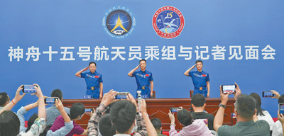 航天員費(fèi)俊龍(中)、鄧清明(右)、張陸敬禮致意?!⌒氯A社記者 郭中正攝 本報北京7月31日電 (劉詩瑤、占康)31日下午,在神舟十五號航天員乘組返回57天后,中國航天員科研訓(xùn)練中心舉行乘組與記者見面會,3名航天員亮相北京航天城。 乘組飛行正常返回后恢復(fù)期主要分為隔離恢復(fù)階段、療養(yǎng)恢復(fù)階段、恢復(fù)觀察階段3個階段實施。截至目前,神舟十五號乘組已完成前兩個階段工作。從整體來看,航天員身心狀態(tài)良好,達(dá)到了預(yù)期效果,已全面轉(zhuǎn)入恢復(fù)觀察階段。待完成任務(wù)返回后恢復(fù)健康評估總結(jié),3名航天員將轉(zhuǎn)入正常訓(xùn)練工作。 見面會上,乘組就駐留空間站階段和返回后的相關(guān)情況答記者問。作為執(zhí)行出艙任務(wù)次數(shù)最多的乘組,指令長費(fèi)俊龍表示:“4次出艙是我們這次任務(wù)的亮點(diǎn),也是中國載人航天事業(yè)的亮點(diǎn),它是今天的紀(jì)錄,更是明天的起點(diǎn),我們相信后續(xù)的乘組會創(chuàng)造更多更新的紀(jì)錄!” 航天員鄧清明堅守25年的奮斗歷程令在場每一個人感動。25年的堅持,鄧清明時刻準(zhǔn)備著?!?5”也是一個令他倍感幸福的數(shù)字。在酒泉衛(wèi)星發(fā)射中心,乘組從問天閣到報告出征地點(diǎn),正好走了25米。兩個“25”鞭策并鼓勵他不辜負(fù)黨和人民的厚望重托,堅決圓滿完成任務(wù)。 航天員張陸在太空拍攝了大量精美的照片。一次次在舷窗邊眺望祖國和家鄉(xiāng),他感慨萬千:家是最小國,國是千萬家。家國情懷,是刻在骨子里的情懷,承載著中華兒女千百年來對“家鄉(xiāng)”的深厚眷戀,更是對“國家”的絕對忠誠。 兩次飛上太空并擔(dān)任指令長的費(fèi)俊龍有了新的體會,他認(rèn)為兩次任務(wù)雖然有所不同,但是,永遠(yuǎn)不變的是他們?yōu)樽鎳稣魈盏某跣氖姑⒂啦煌P膫鋺?zhàn)訓(xùn)練、逐夢九天的赤膽忠心。不管何時飛天,不管幾次飛天,他們都時刻準(zhǔn)備著再次為國出征。 神舟十五號乘組被網(wǎng)友稱為“圓夢乘組”。對于夢想,鄧清明深有感觸:“中國夢、航天夢、我的夢,同心筑夢、并肩追夢、攜手圓夢。正是一個個夢想的疊加,描繪出新時代最為壯闊的圖景?!?/p> 兩次“太空會師”成為中國載人航天的高光時刻和歷史瞬間。張陸回顧了兩次團(tuán)聚的溫暖細(xì)節(jié),并感慨道:“神舟十四號乘組傳遞給我們的這份關(guān)愛,我們也傳遞給了神舟十六號乘組。這份濃濃的情誼,是生死相托的相互信任,也是航天精神的接續(xù)傳承?!?/p> 當(dāng)記者提到我國載人登月任務(wù)時,費(fèi)俊龍充滿期待:“我們?nèi)w航天員都將為這一新目標(biāo)不懈奮斗,永遠(yuǎn)做新時代中國航天事業(yè)的奮斗者、攀登者,邁向更遠(yuǎn)深空,在新征程上再立新功!” (責(zé)編:木勝玉、朱紅霞) |