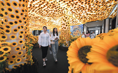 | 觀眾在天津數(shù)字藝術(shù)博物館全景數(shù)字藝術(shù)互動(dòng)大展預(yù)展上參觀。 新華社記者 孫凡越攝 |