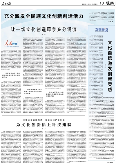 | 人民日報(bào)整版探討:充分激發(fā)全民族文化創(chuàng)新創(chuàng)造活力 |