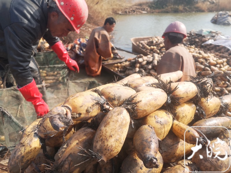 時下,蓮藕最肥碩、脆甜的時候。放眼望去,一條條雪白的蓮藕接二連三地浮出水面,一艘艘滿載蓮藕的船只向岸邊駛去,一筐筐鮮嫩的蓮藕被工人們裝進貨車運往大型農(nóng)貿(mào)市場,豐富百姓的菜籃子。