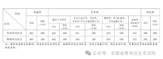 安徽省2024年普通高校招生文化課錄取控制分?jǐn)?shù)線