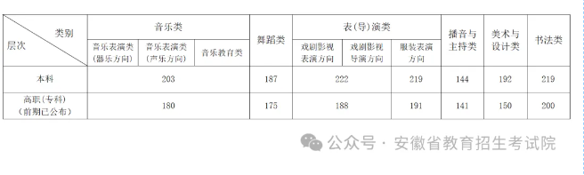 安徽省2024年普通高校招生藝術(shù)類統(tǒng)考批次專業(yè)課錄取控制分?jǐn)?shù)線