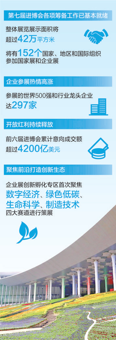 進(jìn)博會(huì)主場(chǎng)館國(guó)家會(huì)展中心(上海)南廣場(chǎng)。 第七屆進(jìn)博會(huì)將于11月5日至10日在上海舉辦。10月23日,國(guó)務(wù)院新聞辦公室舉行新聞發(fā)布會(huì)介紹相關(guān)情況。 297家世界500強(qiáng)和行業(yè)龍頭企業(yè)參展 “進(jìn)博會(huì)由習(xí)近平主席親自謀劃、親自提出、親自部署、親自推動(dòng),是中國(guó)推動(dòng)新時(shí)代高水平對(duì)外開放的重大決策,是中國(guó)主動(dòng)向世界開放市場(chǎng)的重要舉措?!鄙虅?wù)部部長(zhǎng)助理唐文弘表示,2018年首次舉辦以來,進(jìn)博會(huì)持續(xù)發(fā)揮國(guó)際采購、投資促進(jìn)、人文交流、開放合作“四大平臺(tái)”功能,成為構(gòu)建新發(fā)展格局的窗口、推動(dòng)高水平開放的平臺(tái)、全球共享的國(guó)際公共產(chǎn)品。 唐文弘介紹,第七屆進(jìn)博會(huì)各項(xiàng)籌備工作已基本就緒,整體展覽展示面積將超過42萬平方米,將有152個(gè)國(guó)家、地區(qū)和國(guó)際組織參加國(guó)家展和企業(yè)展,虹橋國(guó)際經(jīng)濟(jì)論壇將舉辦主論壇和19場(chǎng)分論壇。進(jìn)博會(huì)將從以下3個(gè)方面進(jìn)一步提升成效。 第一,進(jìn)一步提升構(gòu)建新發(fā)展格局的窗口功能。在助力暢通國(guó)內(nèi)大循環(huán)方面,首次設(shè)立新材料專區(qū),升級(jí)打造創(chuàng)新孵化專區(qū),舉辦首發(fā)經(jīng)濟(jì)和促進(jìn)消費(fèi)相關(guān)分論壇等活動(dòng)。在促進(jìn)國(guó)內(nèi)國(guó)際雙循環(huán)方面,持續(xù)打造全球新品首發(fā)地、前沿技術(shù)首選地、創(chuàng)新服務(wù)首推地,組織39個(gè)政府交易團(tuán)和4個(gè)行業(yè)交易團(tuán)、共計(jì)780個(gè)分團(tuán)到會(huì)采購,為歷屆最多。 第二,進(jìn)一步發(fā)揮推動(dòng)高水平開放的平臺(tái)作用。舉辦進(jìn)博會(huì),積極擴(kuò)大進(jìn)口,這是中國(guó)擴(kuò)大自主開放的重要舉措。本屆進(jìn)博會(huì)企業(yè)展繼續(xù)保持36萬多平方米的超大規(guī)模,共有129個(gè)國(guó)家和地區(qū)的3496家展商參加,國(guó)別(地區(qū))數(shù)和企業(yè)數(shù)都超過了上屆,參展的世界500強(qiáng)和行業(yè)龍頭企業(yè)達(dá)297家,創(chuàng)歷史新高,186家企業(yè)和機(jī)構(gòu)連續(xù)7屆參加。中國(guó)館以“推進(jìn)中國(guó)式現(xiàn)代化,共謀世界發(fā)展繁榮”為主題,重點(diǎn)展示推進(jìn)中國(guó)式現(xiàn)代化建設(shè)和推動(dòng)高水平對(duì)外開放的最新成果。 第三,進(jìn)一步強(qiáng)化全球共享的國(guó)際公共產(chǎn)品服務(wù)。國(guó)家展繼續(xù)為各國(guó)展示綜合形象和貿(mào)易投資領(lǐng)域機(jī)遇搭建重要平臺(tái),有77個(gè)國(guó)家和國(guó)際組織參展。法國(guó)、馬來西亞、尼加拉瓜、沙特阿拉伯、坦桑尼亞、烏茲別克斯坦將擔(dān)任主賓國(guó)。將為37個(gè)最不發(fā)達(dá)國(guó)家參加國(guó)家展和企業(yè)展提供支持,并擴(kuò)容非洲產(chǎn)品專區(qū),助力擴(kuò)大對(duì)最不發(fā)達(dá)國(guó)家單邊開放,以實(shí)際行動(dòng)踐行普惠包容理念。 前六屆進(jìn)博會(huì)累計(jì)意向成交額超過4200億美元 黨的二十屆三中全會(huì)對(duì)完善高水平對(duì)外開放體制機(jī)制作出了一系列部署。進(jìn)博會(huì)將積極發(fā)揮推動(dòng)高水平開放的平臺(tái)作用,在以下3個(gè)方面持續(xù)發(fā)力。 持續(xù)傳遞開放強(qiáng)音,積極打造推出重大開放舉措、展示開放信心決心的平臺(tái)。通過舉辦進(jìn)博會(huì),堅(jiān)持?jǐn)U大對(duì)外開放的政策宣示,充分彰顯中國(guó)推動(dòng)建設(shè)開放型世界經(jīng)濟(jì)的決心和信心。宣布的一系列開放舉措逐步得到實(shí)施,用實(shí)際行動(dòng)和成果證明,中國(guó)開放的大門只會(huì)越開越大。 持續(xù)釋放開放紅利,著力打造讓世界共享中國(guó)發(fā)展新機(jī)遇的促進(jìn)平臺(tái)。前六屆進(jìn)博會(huì)已有近2500項(xiàng)代表性首發(fā)新產(chǎn)品、新技術(shù)、新服務(wù)亮相,累計(jì)意向成交額超過4200億美元;累計(jì)組織1130多家外資企業(yè)和投促機(jī)構(gòu)赴各地開展精準(zhǔn)對(duì)接,不少展商在中國(guó)開出新門店、新工廠、新研發(fā)中心。進(jìn)博會(huì)將依托中國(guó)超大規(guī)模市場(chǎng)優(yōu)勢(shì),繼續(xù)推動(dòng)“展品變商品”“展商變投資商”的生動(dòng)“進(jìn)博故事”不斷涌現(xiàn)。 持續(xù)凝聚開放共識(shí),努力搭建助力完善全球經(jīng)濟(jì)治理規(guī)則、推動(dòng)建設(shè)開放型世界經(jīng)濟(jì)的交流平臺(tái)。從首屆開始,虹橋國(guó)際經(jīng)濟(jì)論壇廣泛邀請(qǐng)全球政商產(chǎn)學(xué)研各界知名人士,為建設(shè)開放型世界經(jīng)濟(jì)和構(gòu)建人類命運(yùn)共同體建言獻(xiàn)策。 作為我國(guó)開放的前沿,上海把握進(jìn)博機(jī)遇,推進(jìn)高水平對(duì)外開放。上海市委常委、副市長(zhǎng)華源介紹,上海對(duì)標(biāo)國(guó)際最高標(biāo)準(zhǔn)和最好水平,開展了一系列探索和實(shí)踐。 加快構(gòu)建制度型開放新高地。上海自貿(mào)試驗(yàn)區(qū)和臨港新片區(qū)建設(shè)成效顯著,臨港新片區(qū)運(yùn)行5年來,規(guī)上工業(