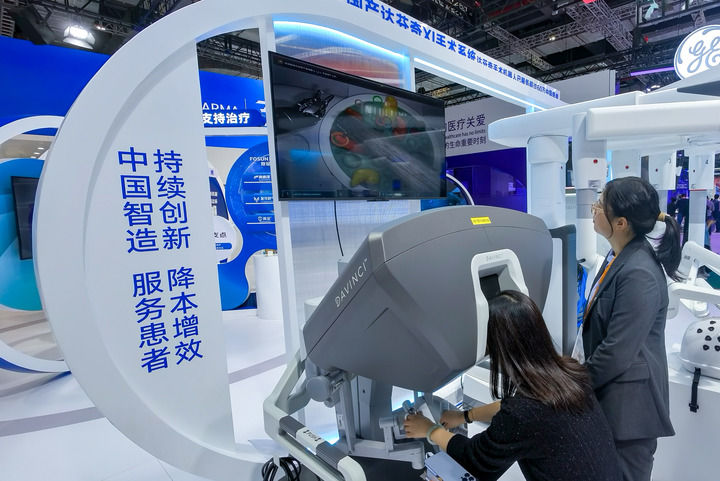 ??11月8日,一名參觀者(左)在第七屆進博會醫(yī)療器械及醫(yī)藥保健展區(qū)復星醫(yī)藥展臺體驗操作一款外科手術機器人。新華社記者 張鋮 攝 ??“七年來我們在進博會全球首發(fā)了29款新品,其中,有19款產品靈感來源于中國傳統(tǒng)文化。”樂高集團高級副總裁、中國區(qū)總經(jīng)理黃國強說,這些充滿中國元素的產品不僅在中國市場備受歡迎,在全球市場上同樣熱賣。