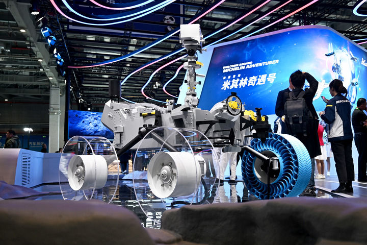 ??這是11月6日在第七屆進博會汽車展區(qū)拍攝的在亞洲首次亮相的米其林月球探測車輪胎。新華社發(fā)(陳浩明 攝) ??——這里有投資中國的有效指引。 ??進博會是世界觀察中國經(jīng)濟的一扇窗,為眾多跨國企業(yè)扎根中國、深耕中國提供了風向標。