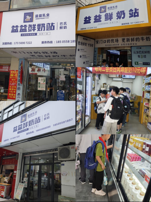 ![]() 淮北牛奶廠社區(qū)奶站。圖/網(wǎng)絡(luò) “一杯鮮牛奶,憶起兒時(shí)味兒!”淮北市牛奶廠,源自1958年,這個(gè)擁有60多年歷史的老品牌,在淮北幾代人的心中,留下了“打鮮奶”“喝鮮奶”的記憶。資料顯示,淮北市牛奶廠即為安徽曦強(qiáng)乳業(yè),是全國(guó)農(nóng)產(chǎn)品加工示范企業(yè)、安徽省農(nóng)業(yè)產(chǎn)業(yè)化重點(diǎn)龍頭企業(yè),擁有一個(gè)年產(chǎn)12.5萬(wàn)噸的乳制品產(chǎn)業(yè)基地和六個(gè)牧場(chǎng)。 另外,曦強(qiáng)乳業(yè)在去年開(kāi)始,重新打造“淮北牛奶廠”IP,在全市開(kāi)設(shè)鮮奶站,主推現(xiàn)打鮮奶,顧客可以自己親手灌裝牛奶,而且店里還有面包、蛋糕、酸奶等其他產(chǎn)品。目前,已在淮北市開(kāi)設(shè)社區(qū)奶吧超過(guò)70家,直營(yíng)店超30家。 同樣在淮南,益益牛奶可謂是無(wú)人不知,益益鮮奶站更是超過(guò)了180家。而安徽益益乳業(yè),則始創(chuàng)于1956年,是“安徽老字號(hào)”品牌,擁有一個(gè)可年產(chǎn)10萬(wàn)噸的乳制品工廠,有著專(zhuān)業(yè)的奶牛養(yǎng)殖和乳品生產(chǎn)經(jīng)驗(yàn),榮獲優(yōu)質(zhì)奶源基地、學(xué)生奶定點(diǎn)奶源生產(chǎn)基地等榮譽(yù)。 特別是益益鮮奶站,更是淮南當(dāng)?shù)厝巳粘OM(fèi)牛奶的聚集地,在鮮奶站里,不僅可以買(mǎi)到鮮奶,還可以喝到現(xiàn)調(diào)的酸奶、牛奶飲品等。甚至,益益鮮奶站已經(jīng)在阜陽(yáng)市區(qū)都開(kāi)了七八家,經(jīng)了解,每家店每月?tīng)I(yíng)業(yè)額都已經(jīng)在5萬(wàn)以上,有不少阜陽(yáng)市民進(jìn)店消費(fèi)。
