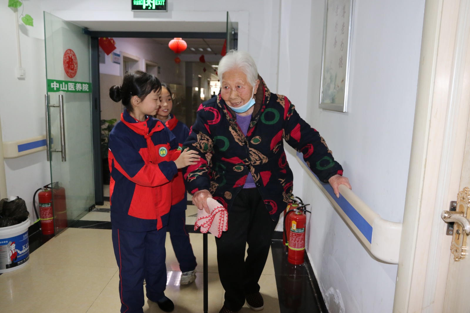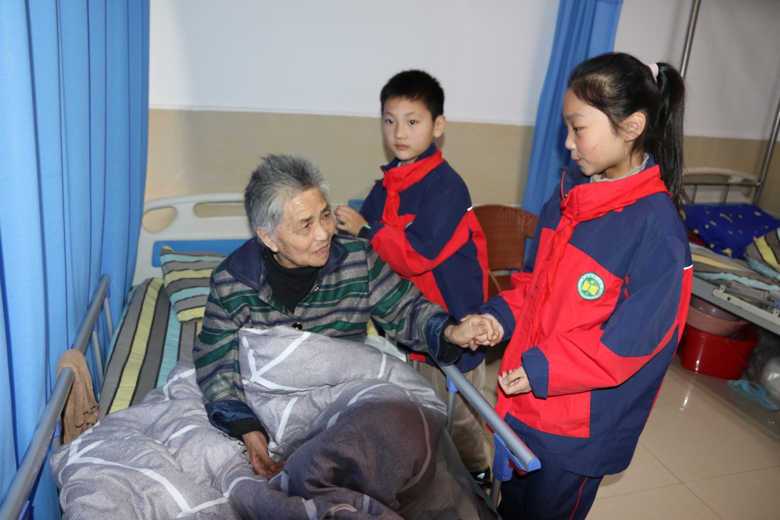 到達敬老院,學(xué)生代表首先致辭,表達對老人們的問候。