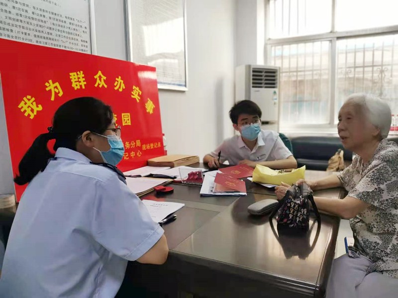 黨史學(xué)習(xí)教育開展以來,阜陽市不動產(chǎn)登記中心按照“學(xué)黨史、悟思想、辦實事、開新局”的總要求,堅持把“我為群眾辦實事”實踐活動貫穿工作全過程,除了在市民中心開展業(yè)務(wù),為了更好的為民服務(wù),更是創(chuàng)新方式方法將“窗口”開在了基層一線。 在阜陽市一中的家屬院里,一些退休教師陸續(xù)的在臨時辦公室里在辦理自家房屋的不動產(chǎn)權(quán)證,阜陽市不動產(chǎn)登記中心的工作人員上門直接辦理,老人家都非常高興。因為第一,不出家門口,不用往行政服務(wù)大廳排隊;第二,提供好所需要的手續(xù)后,兩個工作日,工作人員就會把房產(chǎn)證送到他們的手里。老人們都對不動產(chǎn)登記中心的貼心服務(wù)贊不絕口。